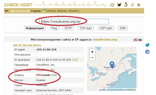 Сегодня IP-адреса сайта VoxUkraine расположены в Канаде и США.