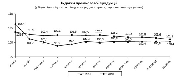 В то же время в Госстате сообщили, что за январь-декабрь 2018 года к аналогичному периоду 2017 года рост промпроизводства составил 1,1%.